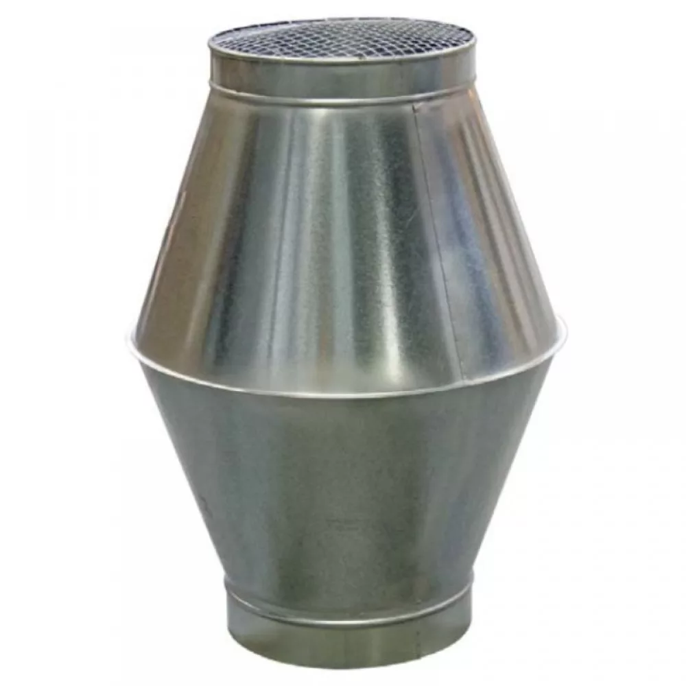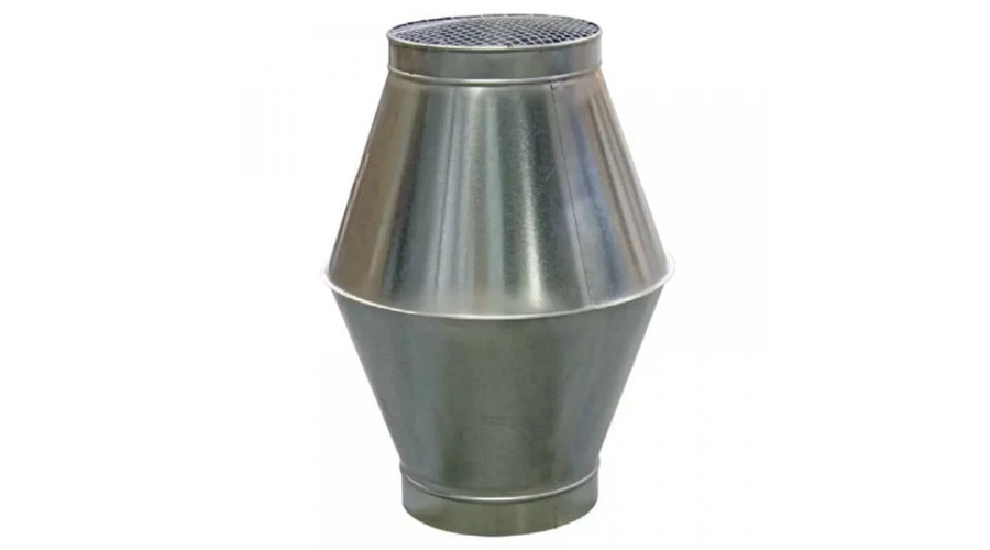 Horganyzott acél betétkúpos kifúvófej függőleges kifúvással, ipari és komfort szellőzéshez, az EN 12237 szabvány szerinti D légzárósági osztályú gumitömítéssel. A légzárósági osztályt az építkezésen történő beépítés is meghatározza. CAIROX típus: DKA