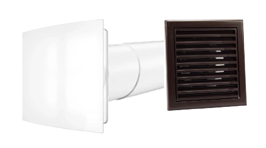 Fürdőszoba ventilátor időzítővel és páraérzékelővel, külső barna ráccsal, 100 mm- Szettben