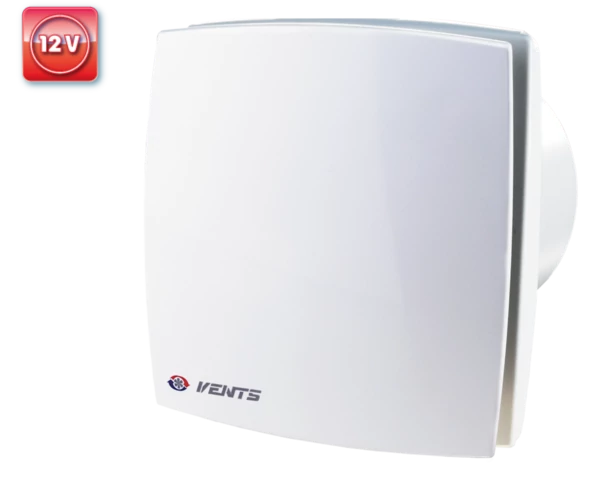 Esztétikus megjelenésű 12 V-os, váltóáramú motorral szerelt időkapcsolós ventilátor. Falba szerelhető, IP34-es védettsége, műanyag lapátja alkalmassá teszi igen nedves helyiségek szellőztetésére. Csendes motorja túlmelegedés ellen védett. Hálózatra csatlakoztatásához szükséges áramátalakító. Javasoljuk fürdőszobába, párás helyiségekbe 2,5 méternél rövidebb csőszakaszhoz.