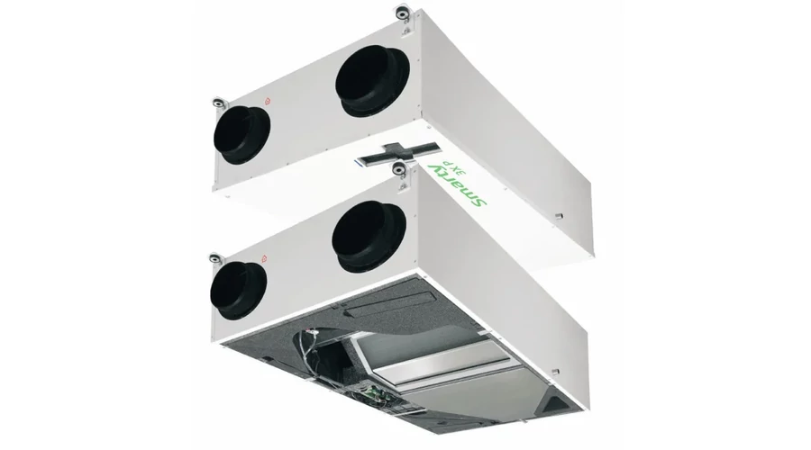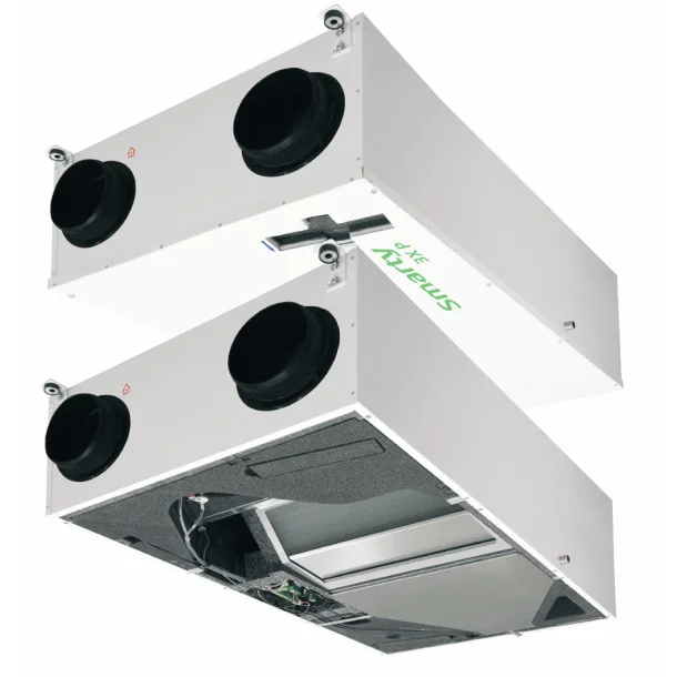 Lakásszellőztető légkezelő egység beltéri telepítésre, nagy hatékonyságú műanyag kereszt-ellenáramú hővisszanyerővel, EC-motoros ventilátorokkal, oldalsó légoldali csatlakozó csonkokkal, mennyezet alatti szereléshez. Az EPP-ből készült légmentes belső rész minimalizálja belső és külső légszivárgások lehetőségét. A Smarty légkezelő intelligens algoritmust használ a fagyvédelemhez. A légkezelő külső vezérlőpanelről (opciós tétel), interneten keresztül (opciós tétel) vagy mobilalkalmazáson keresztül (opciós tétel) vezérelhető.A légkezelő egység kiválóan alkalmas házak, irodák vagy más fűtött helyiségek szellőztetésére szolgál: tantermek, lakások, konferenciatermek és egyéb helyiségek.