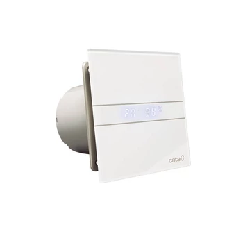 | Cata E-100MTH metakrilát előlappal, utószellőztető és páraérzékelő funkcióval szellőztető ventilátor formatervezett kialakításának nem csak esztétikai, hanem áramlástechnikai szerepe is van. A hasonló teljesítményű, hagyományos kialakítással rendelkező társaihoz képest alacsonyabb zajszint jellemzi. Fürdőszobák, mellékhelyiségek, háztartási helyiségek szellőztetésére tervezték, az elhasználódott levegő közvetlen faláttörésen vagy rövid csőrendszeren keresztül történő kivezetésére. A ventilátor üzemeltethető a helyiség lámpakapcsolójáról vagy a ventilátor számára külön elhelyezett kapcsolóról egyaránt. Metakrilát (kiváló optikai tulajdonságokkal rendelkező víztiszta, UV álló üvegszerű speciális műanyag) előlapja, az egységcsomagban található célszerszám segítségével levehető, ezáltal könnyen tisztítható. A metakrilát előlap megjelenését tekintve szinte teljesen megegyezik az üvegelőlapos megoldásokkal, ugyanakkor kevésbé rideg anyag, így a ventilátor szerelésekor vagy tisztításakor kisebb eséllyel sérülhet meg, ha esetleg leejtésre kerül. Nem színeződik el, ellenáll az ultraibolya sugárzásnak is. | |