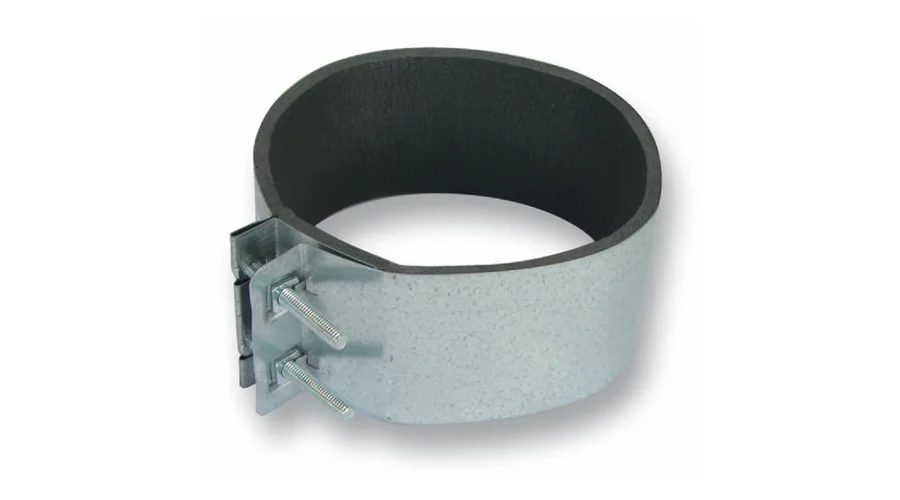 Horganyzott acél-gumi rezgéscsillapító rögzítő bilincs szellőző- és légkondicionáló rendszerek különböző elemeinek rögzítéséhez, hogy minimalizálják a rezgéseket és biztosítják a rendszer különböző részeinek szoros illeszkedését.