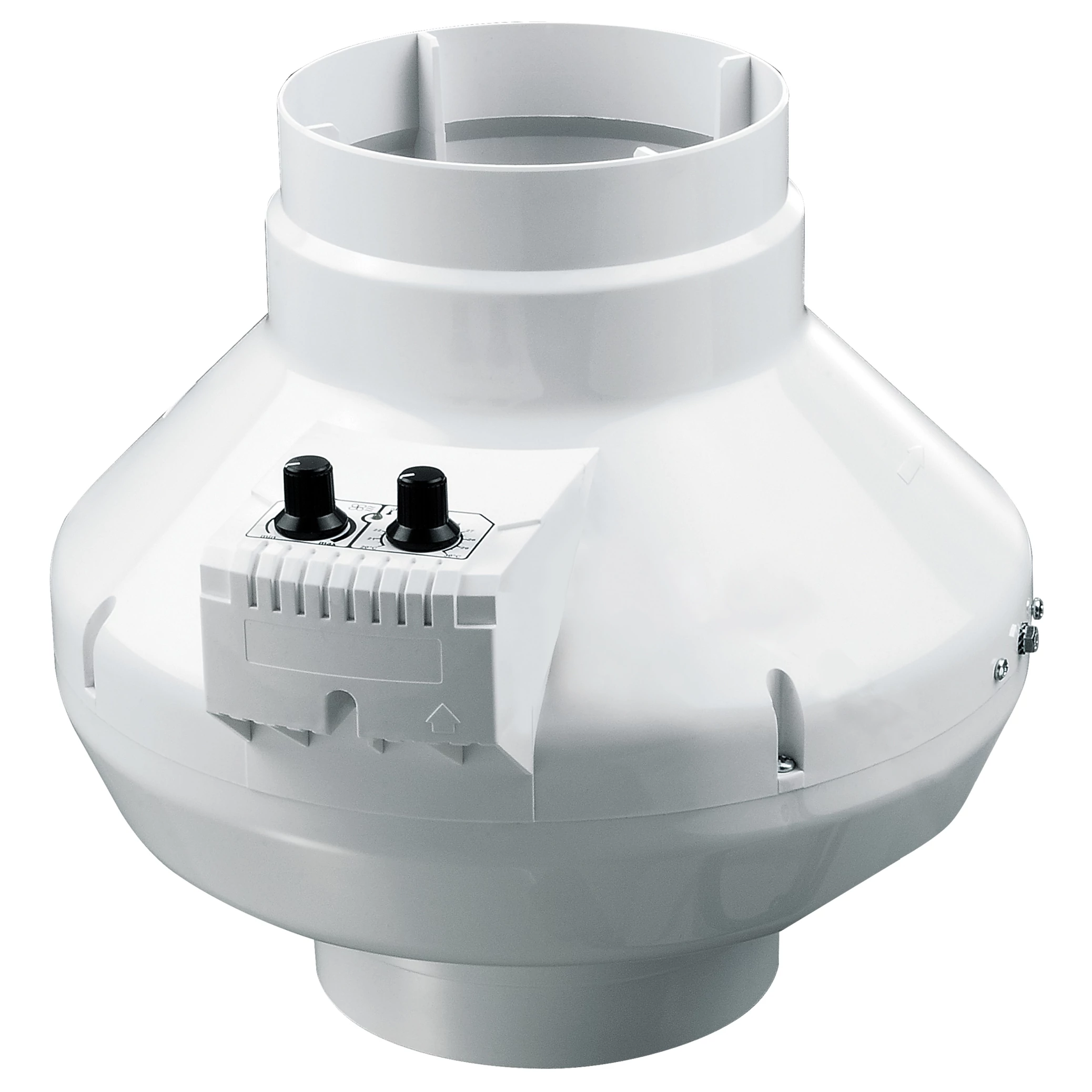 A ventilátor beépített elektronikus fordulatszám szabályozóval és termosztáttal rendelkezik, amely lehetővé teszi az automatikus fordulatszám-szabályozást a csővezetékben lévő levegő hőmérsékletének függvényében. A hőmérsékletet és a minimális sebesség a ventilátor paneljén található vezérlőgombok segítségével állítható be. A termosztát szabályozását biztosító LED-jelző a ventilátor előlapján található.